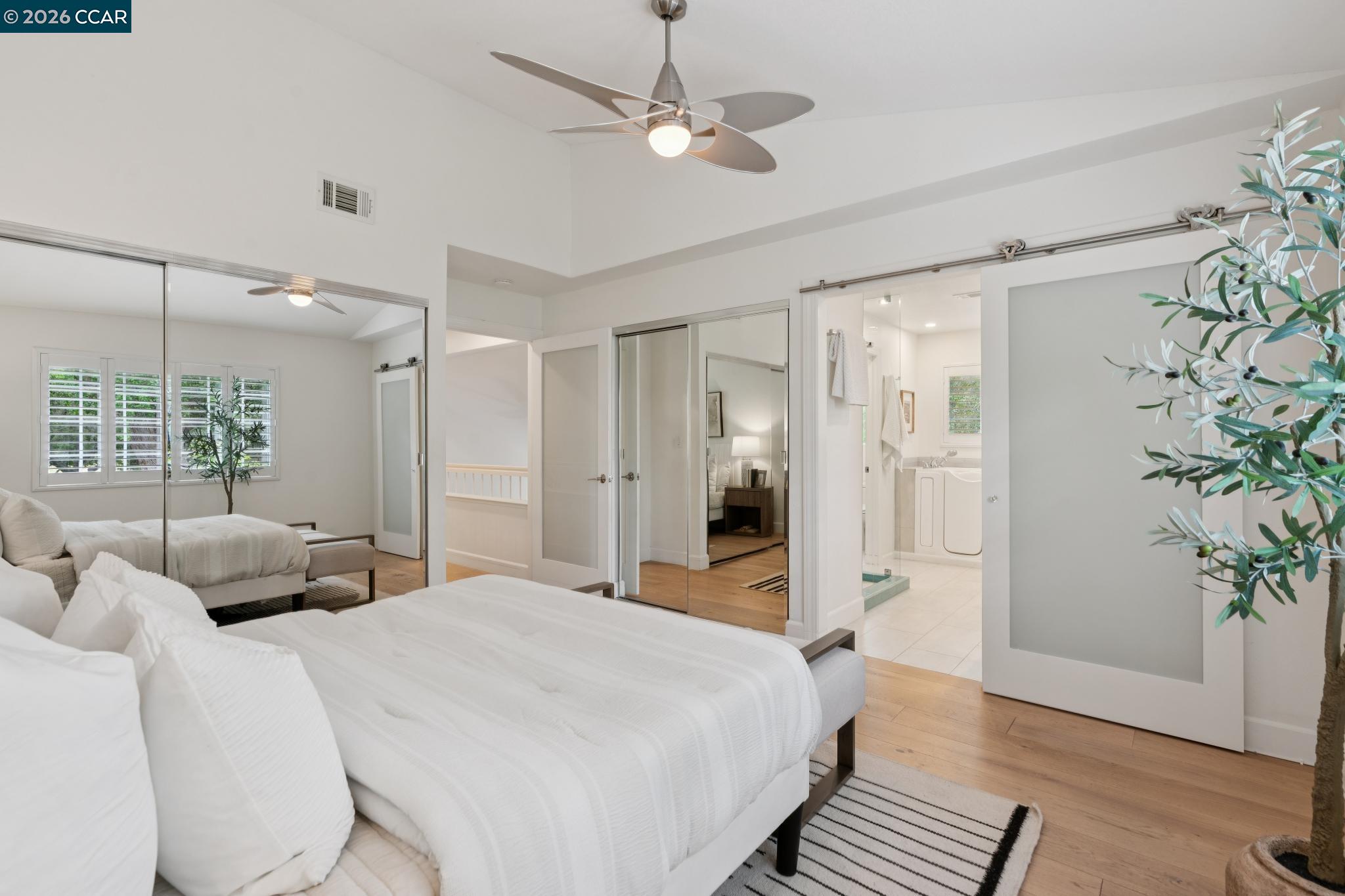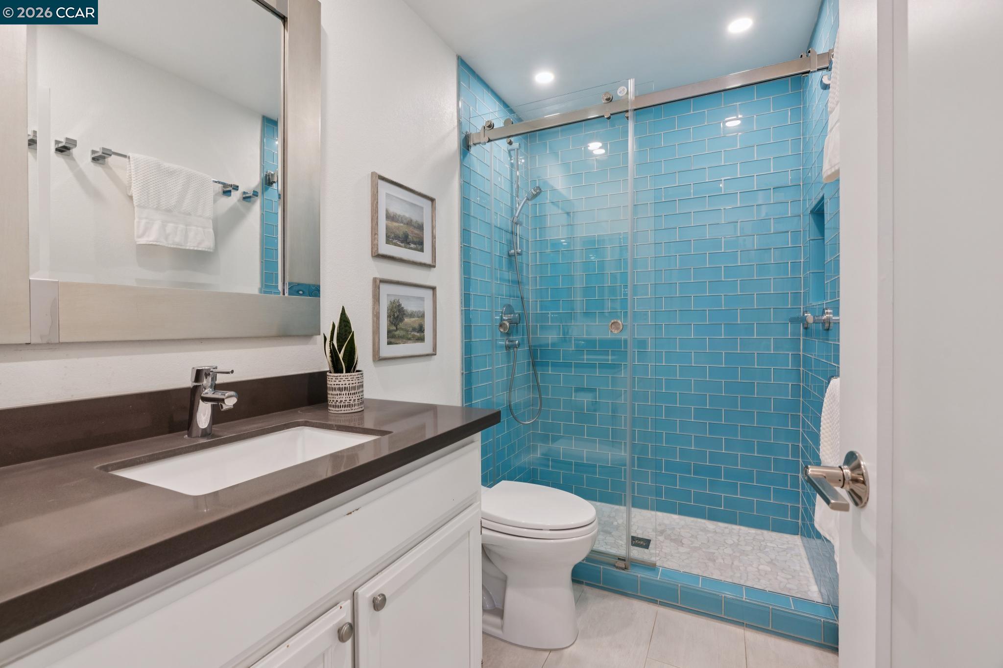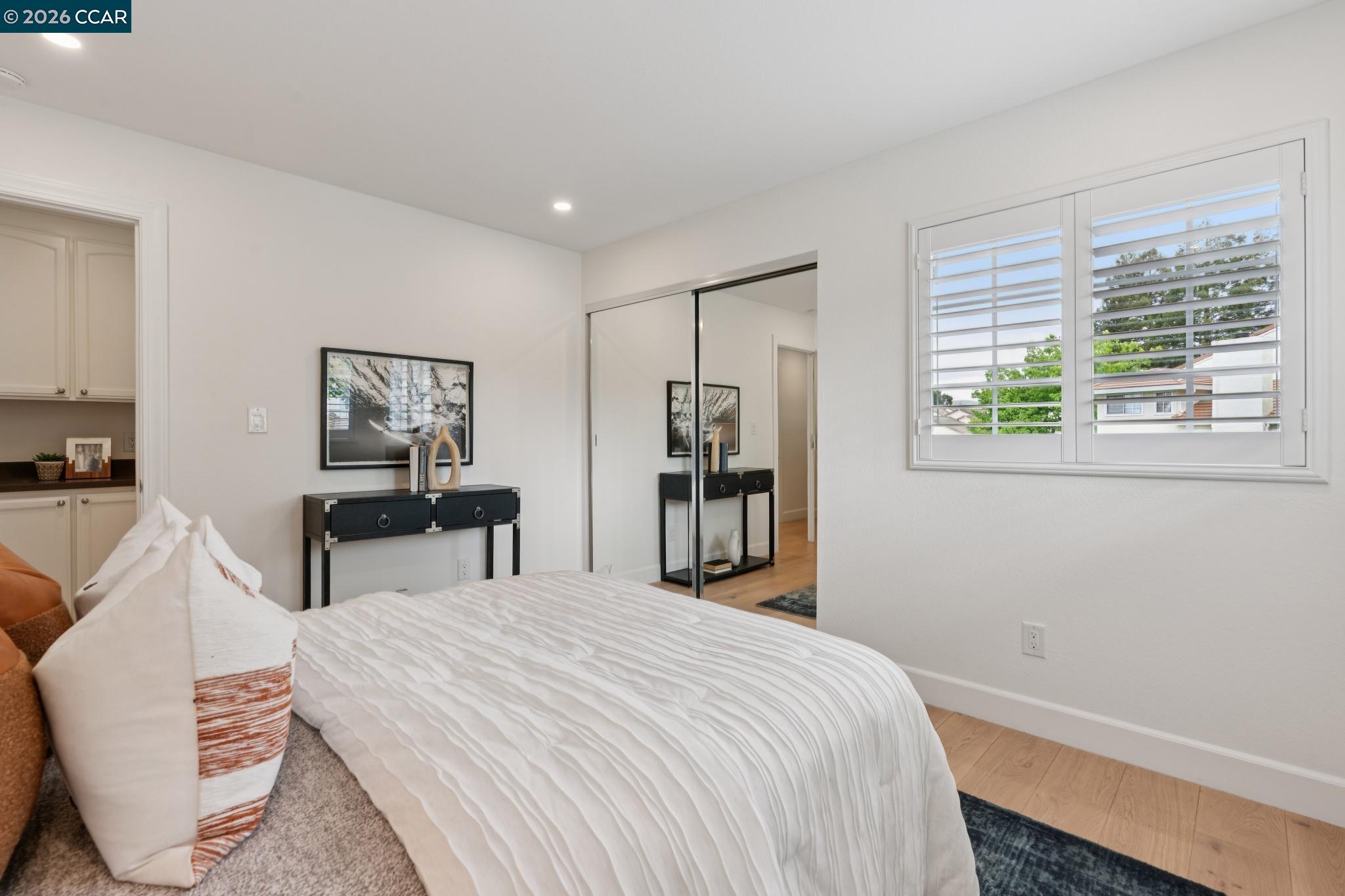 Nestled among majestic oak trees in the serene Live Oak community in Concord, this beautifully updated home offers the perfect balance of comfort, luxury, & easy living--at an exceptional value. Inside, elegant English oak hardwood floors flow throughout, complemented by soaring vaulted ceilings & abundant natural light in every room. The inviting living space features a stunning custom concrete fireplace, creating a warm yet sophisticated focal point. The lower-level bath delivers a true spa-like experience with an illuminated quartzite multi-head glass enclosed shower, heated floors, sleek floating toilet, & contemporary lighted vanity--designed for both relaxation & modern convenience. The refreshed chef's kitchen is ideal for everyday living & entertaining, featuring stainless steel appliances, generous counter space, a sunny eat-in area, & a breakfast bar surrounded by windows. A spacious dining area complements the space perfectly. Enjoy seamless indoor-outdoor living in this hummingbird haven as you overlook the private, verdant backyard--complete with a stone patio & oversized built-in BBQ with integrated gas line, perfect for gatherings or quiet evenings. Upstairs, the vaulted primary suite offers a peaceful retreat with a luxurious ensuite featuring a custom glass tile walk-in shower, soaking tub, dual vanities, & a separate water closet. The open hallway provides dramatic views to the level below & leads to 2 spacious bedrooms with oversized closets and scenic hill views, along with a beautifully appointed hall bath. Additional highlights include a finished two-car garage and extensive upgrades for peace of mind, including newer plumbing, tankless water heater, HVAC with filtration, & electrical improvements--all professionally completed with permits. Ideally located in Concord's highly sought-after valley area, just minutes from shopping, dining, coffee shops, Turtle Creek Park, Lime Ridge, John Muir Hospital, Highway 680, & BART. A rare opportunity to enjoy refined living with modern comfort and minimal upkeep--this is the lifestyle you've been waiting for. OPEN HOUSE SATURDAY 4/18 & SUNDAY 4/19 1-4 pm