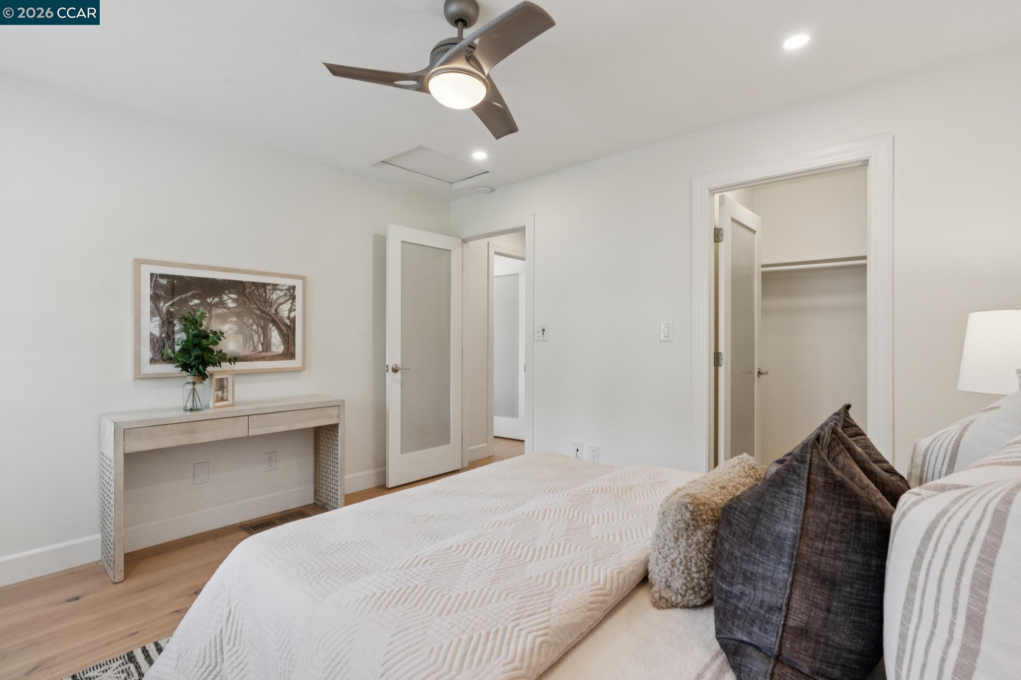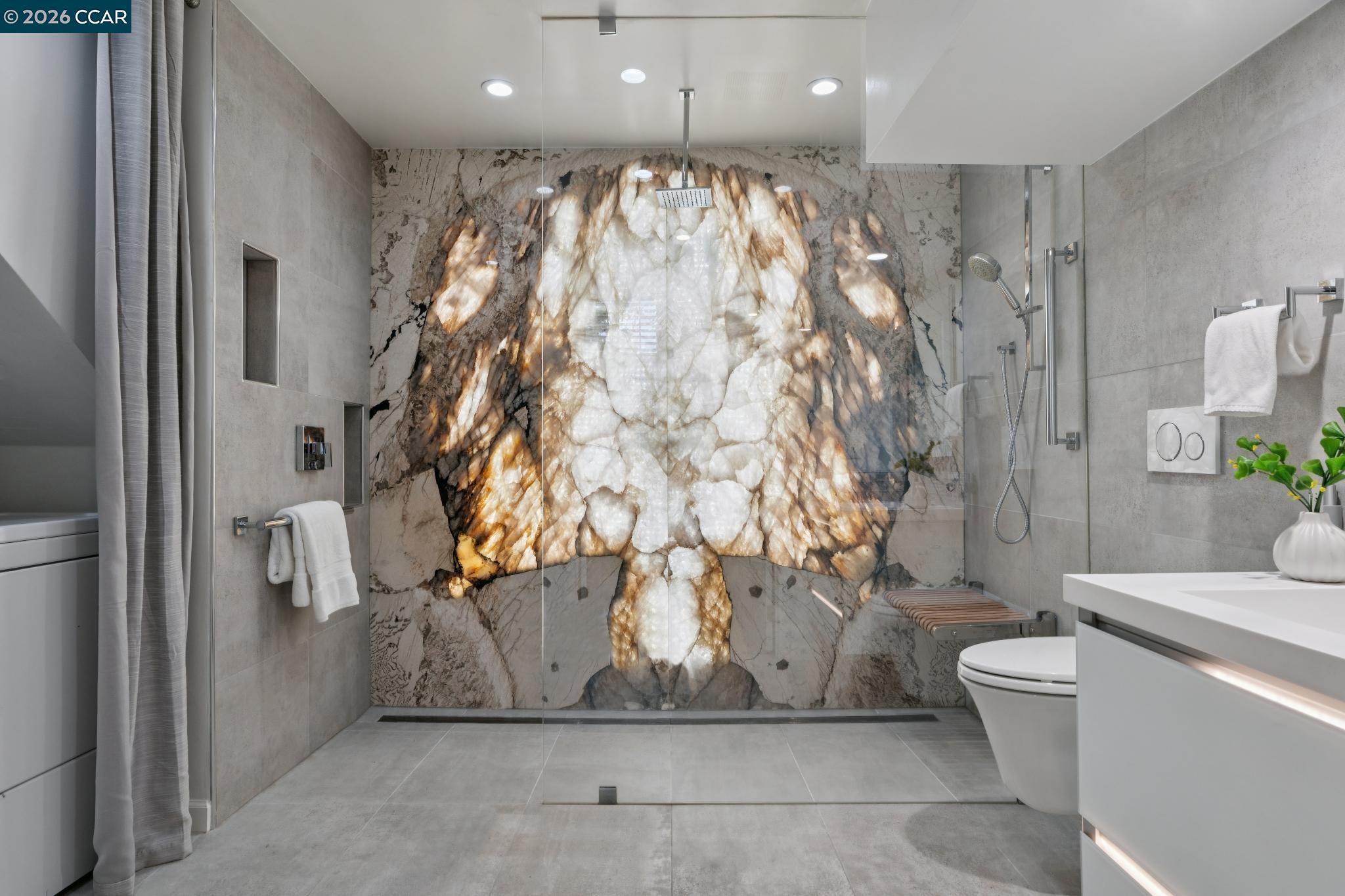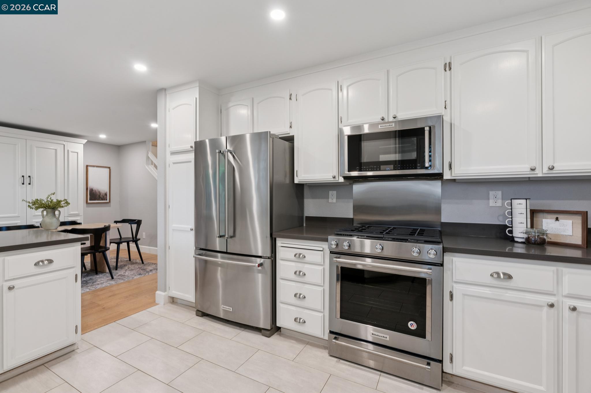 Nestled among majestic oak trees in the serene Live Oak community in Concord, this beautifully updated home offers the perfect balance of comfort, luxury, & easy living--at an exceptional value. Inside, elegant English oak hardwood floors flow throughout, complemented by soaring vaulted ceilings & abundant natural light in every room. The inviting living space features a stunning custom concrete fireplace, creating a warm yet sophisticated focal point. The lower-level bath delivers a true spa-like experience with an illuminated quartzite multi-head glass enclosed shower, heated floors, sleek floating toilet, & contemporary lighted vanity--designed for both relaxation & modern convenience. The refreshed chef's kitchen is ideal for everyday living & entertaining, featuring stainless steel appliances, generous counter space, a sunny eat-in area, & a breakfast bar surrounded by windows. A spacious dining area complements the space perfectly. Enjoy seamless indoor-outdoor living in this hummingbird haven as you overlook the private, verdant backyard--complete with a stone patio & oversized built-in BBQ with integrated gas line, perfect for gatherings or quiet evenings. Upstairs, the vaulted primary suite offers a peaceful retreat with a luxurious ensuite featuring a custom glass tile walk-in shower, soaking tub, dual vanities, & a separate water closet. The open hallway provides dramatic views to the level below & leads to 2 spacious bedrooms with oversized closets and scenic hill views, along with a beautifully appointed hall bath. Additional highlights include a finished two-car garage and extensive upgrades for peace of mind, including newer plumbing, tankless water heater, HVAC with filtration, & electrical improvements--all professionally completed with permits. Ideally located in Concord's highly sought-after valley area, just minutes from shopping, dining, coffee shops, Turtle Creek Park, Lime Ridge, John Muir Hospital, Highway 680, & BART. A rare opportunity to enjoy refined living with modern comfort and minimal upkeep--this is the lifestyle you've been waiting for. OPEN HOUSE SATURDAY 4/18 & SUNDAY 4/19 1-4 pm